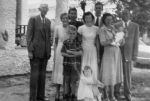 In the photo captioned “Schieffelin Clan” are (left to right) Mark Schieffelin; Nellie Schieffelin; Marie Lammon with Mark Lammon the boy; Thelma Noel Schieffelin with daughter Ann on the tricycle; George Schieffelin; Dorothy Davis holding Tommy; and Ray Davis. Click the thumbnail to see the larger image and Ray.